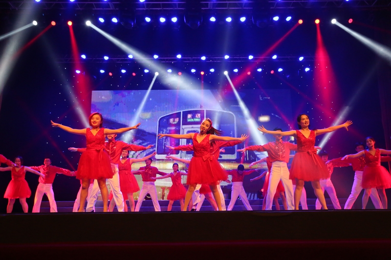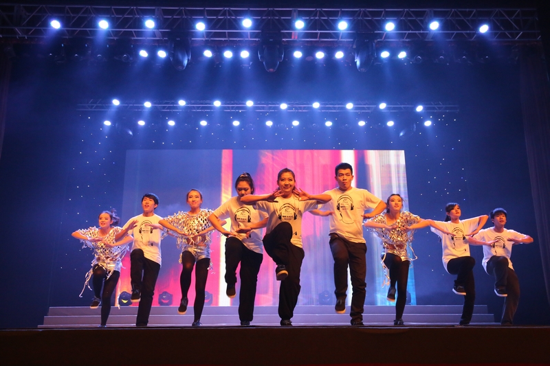 校舞蹈团的演员们带来舞蹈《光荣与梦想》,柔美的舞蹈与大气的音乐相互映衬,为观众展现了青春梦和军旅梦。现代舞《快乐时光》,旋律动感,舞蹈团团员们时而活泼、时而深沉的舞蹈,展现了工商学子的蓬勃朝气。身着金红相间演出服的图书馆的老师们,以《鼓乐贺春》这一气势恢宏的歌舞表演向全校师生致以节日问候。精彩纷呈的《工商大舞台》中,激情活力的健美操、柔中带刚的太极拳、热情奔放的拉丁、柔美优雅的艺术体操,结合速度与技巧的轮滑及带着烟火舞动的双截棍,将整场晚会推向了又一高潮。