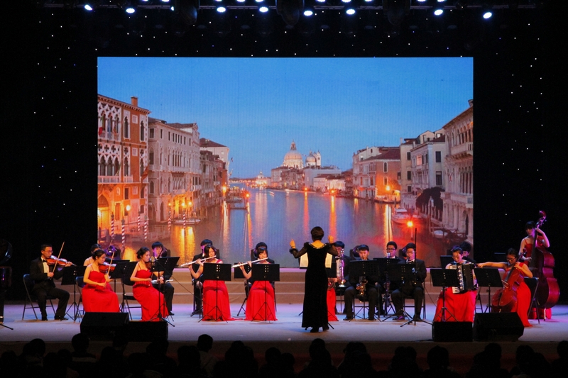 校管乐团为大家带来的是《嫉妒》、《在云端》以及《76支长号》,交响乐完美结合了管乐和弦乐,让这场听觉盛宴完美激昂。多种乐器的声音和谐的融合在一起,久久回荡在会场。