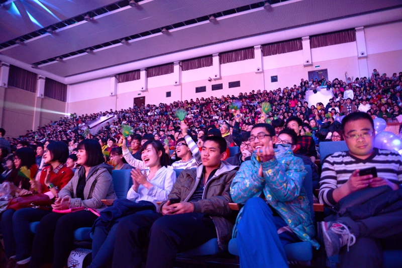 曾获2011年星光大道周冠军的翟长乐、杨云霞为师生们带来了《滑稽杂技》,他们身着小丑服装,用滑稽、轻松的杂技表演和不时变换的手中小道具带给大家阵阵欢笑。曾获全国杂技比赛优秀奖的演员玲珑表演的《蹬技》,用脚顶起水缸和桌子平稳旋转,引得观众纷纷喝彩。中国广播艺术团的相声演员孙仲秋、迟永志带来的《欢歌笑语》令观众们捧腹大笑,纷纷鼓掌叫好。