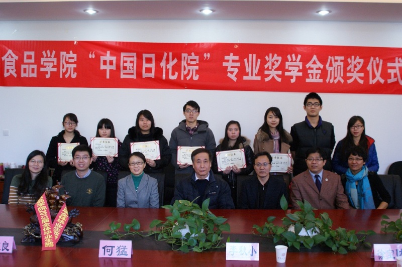中国日化院于2008年在我校食品学院应用化学专业设立“中国日化院”专业奖学金,以此鼓励和引导我校应用化学专业学生认真学习专业知识,毕业后积极投身到洗涤剂、表面活性剂相关专业的生产科研工作中。该奖项自设立以来,共有36名同学获此殊荣,在学生中间树立了典型,通过榜样带动作用,使同学们有进一步努力、前进的目标,为培养学生全面发展,营造良好的学术实践氛围,优化育人环境,创建优良学风发挥了重要作用。