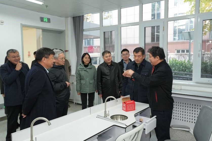 座谈结束后,徐海阳一行在阜成路校区实地考察了数字未来中心、化妆品监管科学研究基地、蛋白资源开发与营养食品研究实验室及中国轻工业酿酒分子工程重点实验室,就科研成果转化、数字赋能教育教学等进行了解。