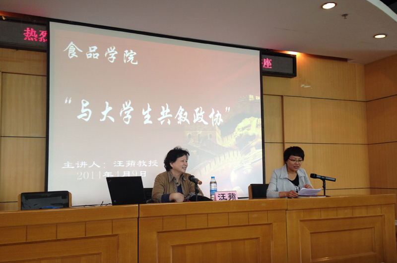 4月9日,食品学院举办“与大学生共叙政协”主题报告交流会。全国政协委员、食品学院教授汪苹受邀,以“全民参与、参政议政”为主题,与近150名研究生和本科生党员深入交流。此次交流会坚持沿用“研本互动”的党员教育模式,倡导团体式、互动式和研讨式的学习方法,帮助学生党员在团队中自觉提高学习能力和政治素养,创新学习型党组织建设,深化学生党员先锋工程。交流会由学院党总支副书记胡燕霞主持。