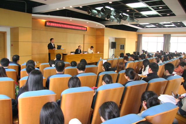 4月16日,我校第八届研究生学术节开幕式暨光华讲堂走进obao欧宝娱乐 活动在阜成路校区举行。校长谭向勇教授、中国光华科技基金会理事长兼秘书长任晋阳出席活动并讲话。参加本次活动的有研究生部主任兼研工部部长杨德勇、研究生部副主任兼研工部副部长熊慧、外语学院党总支副书记任金晶,以及各学院辅导员和研究生代表140人。