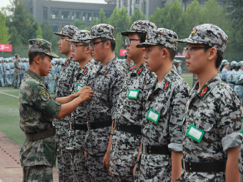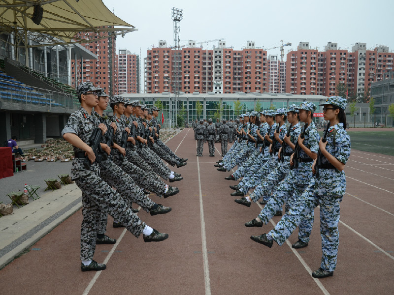田径场上的男生队列身着迷彩服、皮肤逐渐黝黑,在经过几日的军姿、齐步走、正步走训练后,之前身上的懒散习气全然不见,铿锵的步伐,挺直的腰板,愈发充满阳刚之气。在训练匍匐前进时,尽管衣服被磨烂,但他们专注的神情,迅速的动作让人为之动容。他们朝气蓬勃,立正稍息间彰显干练与果断;他们热情洋溢,嘹亮的军歌响彻校园;他们器宇轩昂,齐步行进中尽显军人风采。