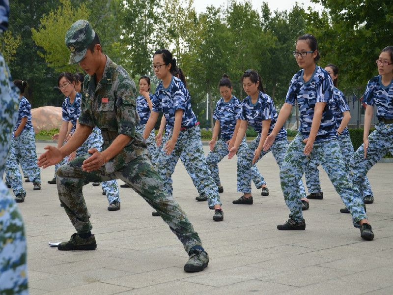 在连续几天强烈的日光浴后今天终于迎来了阴凉的天气。在教官的带领下,新生们坚定地踏着正步,有动作不协调的同学,教官们也一一为之纠正。经过几天的训练,各种动作要领大家都基本掌握,有的连继续巩固基本动作,有的连已经开始了表演项目的训练。看到那些提着步枪表演卧倒、匍匐前进等动作的帅气身影,仿佛置身于真正的军事要地,目睹一场精彩激烈的战斗。