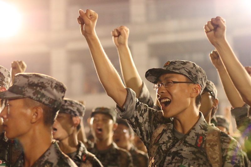 【迷彩激情】图片:2014级新生军训拉练花絮