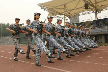 今天的主要训练内容是三大步伐,以正步为主,同学们跟着教官的口号认真地练习着每一个细节动作,教官们也耐心地纠正错误。摆正姿势,昂首挺胸,同学们踢着整齐的正步,教官们的脸上流露着欣慰的笑容,同学们自信坚定的眼神和铿锵有力的步伐是对自己和教官最好的肯定和回报。