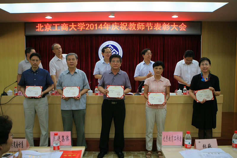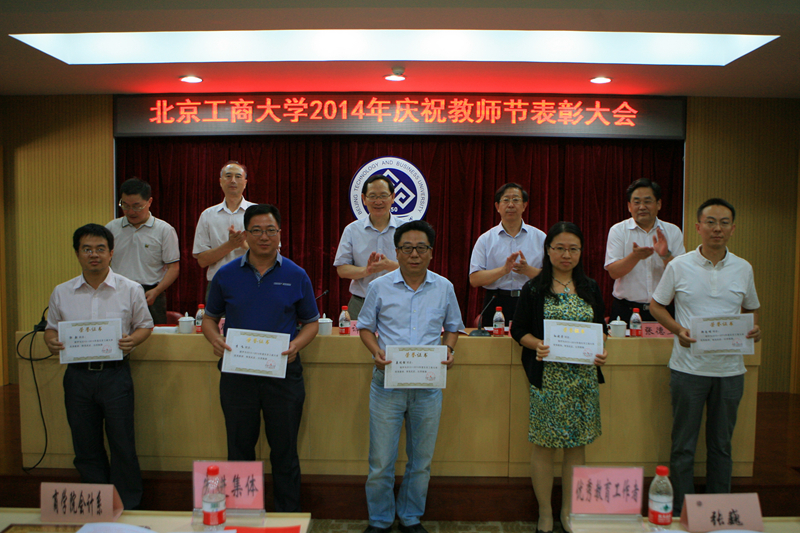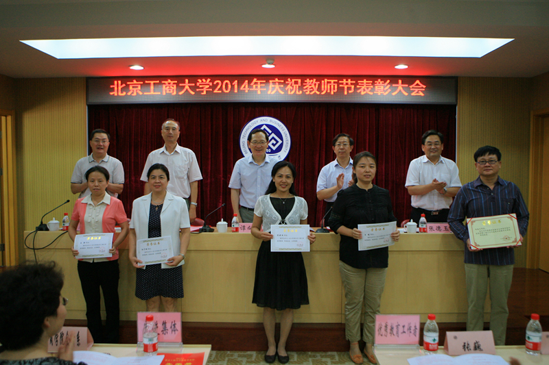 值此第30个教师节之际,9月10日下午,学校在阜成路校区举办2014年庆祝教师节表彰会。党委书记谭向勇、校长孙宝国、党委副书记卢思锋、副校长李朝鲜,2014年首都劳动奖章获得者、2014年北京高校教学名师,2013--2014年度学校优秀教师、优秀教育工作者、先进集体,从教30年教职工代表及师生代表等共聚一堂,欢度节日。党委副书记、纪委书记、工会主席张德玉主持表彰活动。