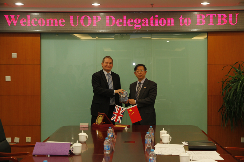 11月12日下午,英国朴次茅斯大学校长格拉翰•加尔布雷斯(Prof. Graham Galbraith)一行5人访问我校。孙宝国校长、李朝鲜副校长在阜成路校区会见了代表团一行。