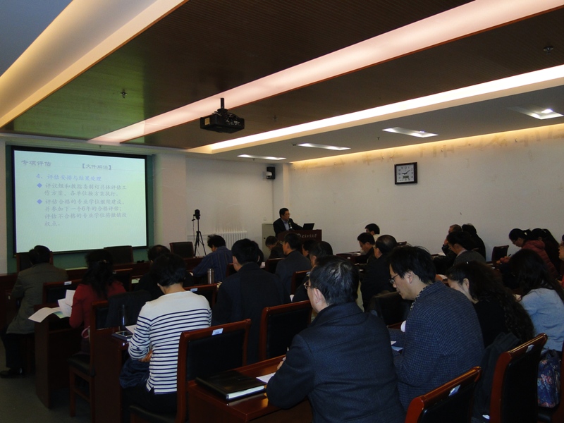 会上,研究生部主任杨德勇解读了教育部关于学位授权点合格评估的文件精神,介绍了学校关于专项评估和自我评估的工作安排。学位授权点合格评估分为专项评估和定期评估,获得学位授权满3年的新增学位授权点(学术学位和专业学位)必须进行专项评估,获得学位授权满6年的学位授权点(学术学位和专业学位)每六年须进行一次合格评估。专项评估由各个教指委负责组织实施,具体指标和标准由教指委根据专业学位授权点的特点分别制订,我校参评的9个专业学位授权点须于今年年底前做好自查工作。合格评估由学位授予单位自我诊断式评估和教育行政部门随机抽评相结合、以自我诊断式评估为主,自我评估是一次全面检查,重点考察学位授权点的目标达成度,着眼于发现问题,明确发展思路,持续提升人才培养质量。