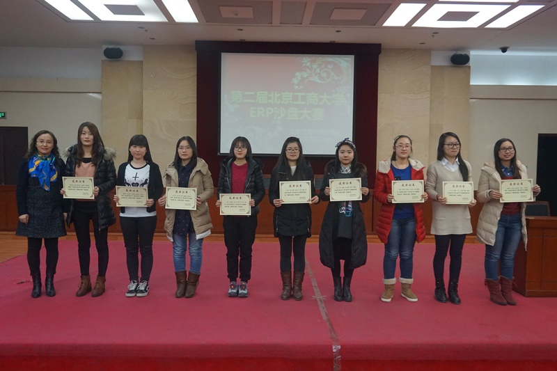 12月13日,由教务处、学生处主办,文科实践中心承办的第二届校园ERP沙盘大赛颁奖典礼在良乡校区举行。用友新道科技有限公司助理总裁、北京分公司总经理宋健,学生处处长吕素香,教务处副处长李海生,文科中心主任郭馨梅出席。ERP课程组教师、各专业参赛的选手参加颁奖会。