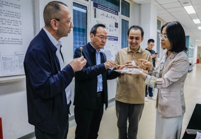 新疆和田学院一行参观了我校中国轻工业酿酒分子工程重点实验室、蛋白资源开发与营养食品研究实验室和化妆品监管科学研究基地。