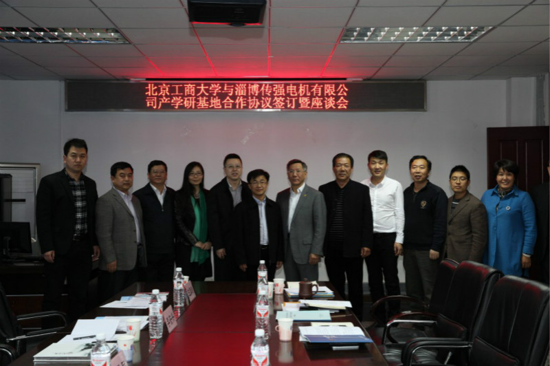蔡强教授、淄博传强电机有限公司董事长王厚利分别代表合作双方签订了产学研基地合作协议。会后,来宾参观了学院阜成路校区相关实验室、研究室等教学科研设施。