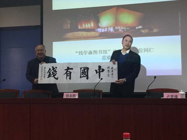 在互动提问环节中,钱永刚就同学们关心的“钱学森之问”、父亲对子女的影响以及人生成功的衡量标准一一做了解答。他希望通过回顾其父亲的一生,给予当代大学生关于成功人生的启迪和思考。并希望同学们能够以老一辈科学家的精神为指引,在科学创新方面,注重逻辑思维与形象思维的培养,恪守学术道德,树立责任担当,为国家科研事业的发展贡献一份力量。报告结束后卢思锋代表学校向钱永刚先生赠送了纪念品表示感谢。
