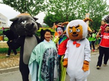 上午九时整,北京市和房山区领导击鼓开走,国际长走大会正式启动。伴随着悠扬的长走大会主题曲,400名方阵志愿者们在指定区域有序排列,组成蓝色,黄色长走方阵的外围边框,引导陆续前来的参赛者进入相应颜色的方阵。在长走角色扮演志愿服务中,我校160名大咖志愿者分别负责开幕式show阵的汉服表演、主会场及沿线的大咖活动和彩跑志愿服务活动。开幕式上,我校20位女生身着汉服组成show方阵进行汉服表演,随着音乐有序变换队形,为大家带来视觉盛宴,也为本届长走节拉开帷幕。志愿者扮演的孙悟空、超人、喜羊羊、灰太狼、小丑等大咖们在主会场及长走沿线各站点站位,在不同的站点有不同的趣味活动,大咖身着玩偶衣服与长走参与者积极互动游戏、配合参加长走的人员合影留念,调动大家的积极性,激发参与者的热情,也为长走活动增添了趣味性。在彩跑比赛环节,我校志愿者包揽了比赛主持、报名咨询、后勤服务等多项任务。赛前负责规则讲解、信息登记和派发护目镜。比赛过程中负责引导参赛者,并向参赛者抛洒彩色粉沫。赛后负责登记成绩、颁发奖品。从早上7点到下午2点,长走大咖们始终穿戴着厚重的大咖服装进行着志愿服务,得到大家一致好评,成为本次长走节一道别具特色的靓丽风景。志愿者们干劲十足,良好的展现了我校志愿者热情奉献的风采和积极向上的精神风貌。