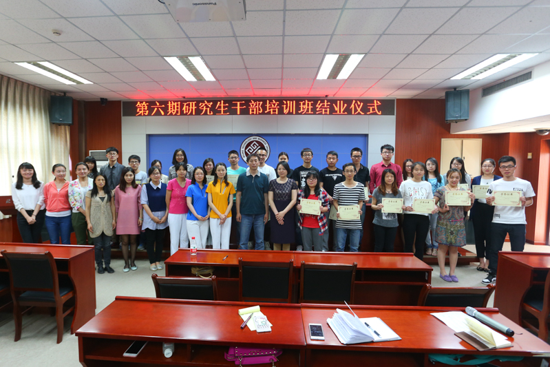 报告会结束后,举行了第六期研究生干部培训班结业仪式,培训班优秀学员及培训班负责人分别作了总结发言,谈了本次培训学习的感受和活动开展情况。熊慧为本期培训班“优秀工作者”、“优秀学员”颁发证书并合影留念。至此,为期八天的培训班活动圆满结束。