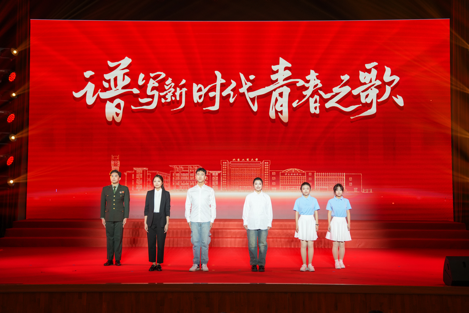 情景剧《青春有我》伴着昂扬的音乐上演。学校十佳学霸宿舍、红色“1+1”获奖学生党支部、先进班集体代表们讲述了优秀基层组织互帮互助、砥砺前行、爱国奋进的故事。