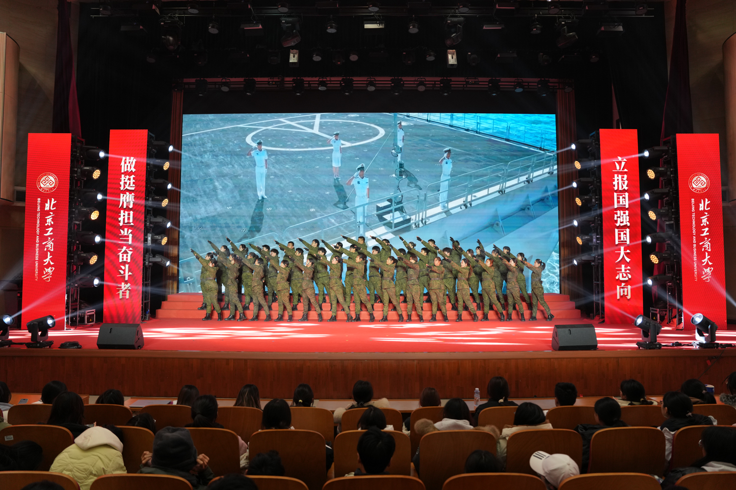 沈千帆代表学校党委和行政,向各位同学以及为学生成长成才付出辛勤汗水的广大教职工致以诚挚的问候,向获奖学生表示衷心的祝贺。他带领大家回顾了“一二•九”运动的历史,勉励同学们赓续北工商的红色基因。沈千帆表示,近年来,学校在全体师生的共同努力下,呈现出蓬勃发展的良好态势,锚定高水平研究型大学的办学定位,围绕国家重大战略和首都经济社会发展需求,为新质生产力不断提供更多更好的科技与人才支撑。在2023-2024学年中,北工商学子与学校发展同向同行,1966名学生荣获校级及以上荣誉称号,8783人次荣获各类奖学金,87个班集体荣获市级、校级表彰。他希望大家与这些同学并肩看齐,为美好的明天奋力拼搏:一是赓续爱国情,书写“坚定不移”的青春力量。要厚植爱党、爱国、爱社会主义的情怀,传递好“坚定不移”的信仰接力棒,扛起“民族复兴”的青春责任。二是砥砺强国志,书写“敢闯敢拼”的青春风采。要砥砺强国志向,勇于开拓、迎难而上,在矢志报国、服务首都等方面贡献青春力量。三是实践报国行,书写“善作善成”的青春作为。注重在社会大课堂中锤炼自我,将爱国之志变为报国之行。沈千帆强调,北工商学子要加倍珍惜美好的青春时光,以热爱祖国的赤诚之心,以民族复兴的美丽愿景,努力挥洒青春汗水、贡献青年力量、谱写闪亮耀眼的青春答卷!