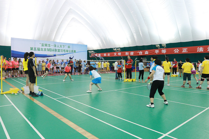 5月30日、6月6日,由北京MBA联盟主办,我校MBA教育中心、MBA联合会承办的“亚狮龙-华人天下”杯第五届北京MBA联盟羽毛球公开赛在京举行,我校副校长方德英、北京MBA联盟常委会主席杨月洁、现任主席董惜如及各校MBA联合会主席出席活动。来自北京大学、清华大学、中国人民大学等22所具有MBA教育办学资格的北京地区高校参与本次赛事。