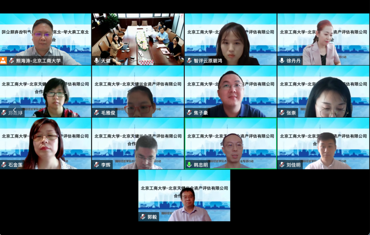 6月28日上午,党委常委、副校长徐丹丹带队与北京天健兴业资产评估有限公司开展线上“访企拓岗促就业”专项行动。北京天健兴业资产评估有限公司董事长孙建民、雄安智评云数字科技有限公司董事长程静萍以及两家企业的各部门负责人,国际经管学院党委书记郭毅,副书记单紫薇,副院长郑延婷、石金莲、熊海涛和大数据管理与应用系部分教师参加了合作交流会。交流会由熊海涛主持。