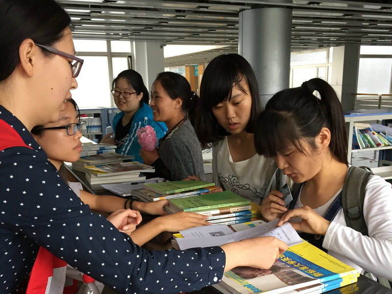9月10日,新生开课前,我校资助中心和校红十字会在“爱心书屋”为家庭经济困难学生免费发放教材,本次活动共为143名学生发放教材834本。