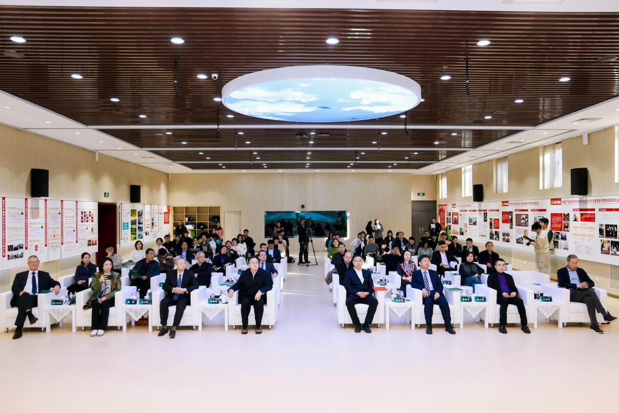 现场举行百雀羚全球前沿科技研究院签约揭牌仪式,在张殿祥、张明智、沈千帆、何小辉的见证下,郭建华、兰俐代表双方签约。