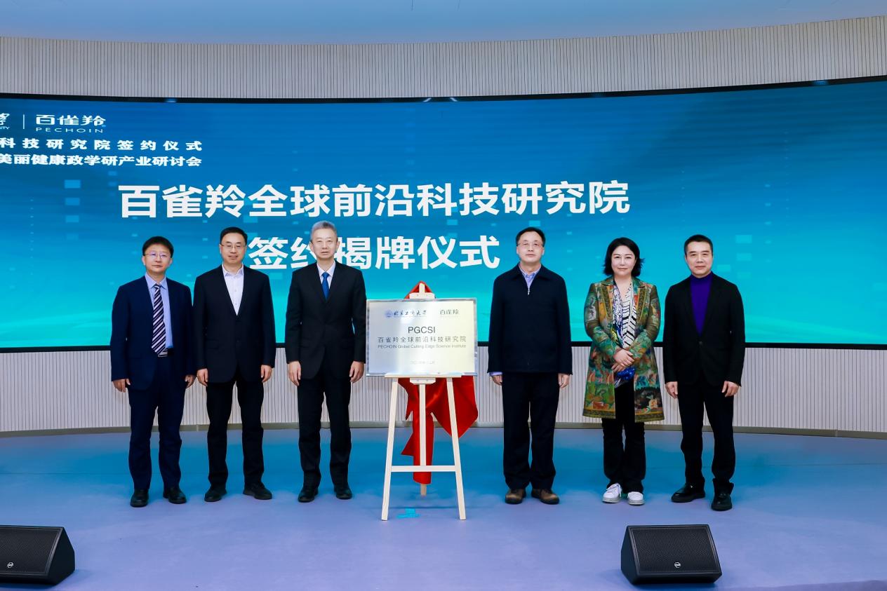 台上领导共同为百雀羚全球前沿科技研究院揭牌。