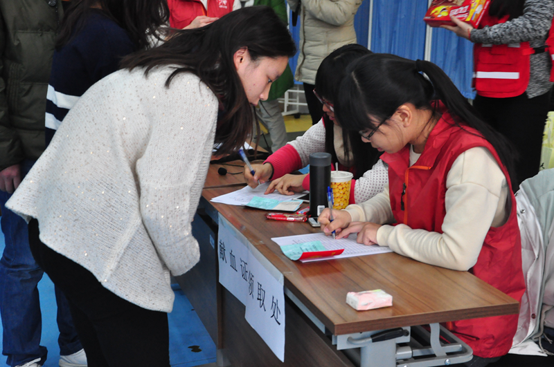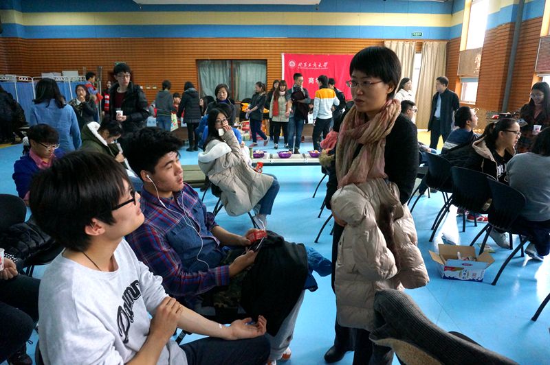 相对于漫漫献血“大军”,为此奋斗的志愿者也许并不引人注意。来自商学院的志愿者身着红马甲在队伍的前后穿梭,不仅要给每个前来排队的人发号码,发献血小册子,发需要填写的表格,还要给每个人检查证件,帮忙整理队伍,安抚未能顺利献血同学的情绪。在献血大厅的志愿者则要完成清点献血者人数,给献血者发放补给品,献血证等一系列工作。做着比同学们更多的准备而甘当幕后英雄,他们的工作态度也令人心生敬意。