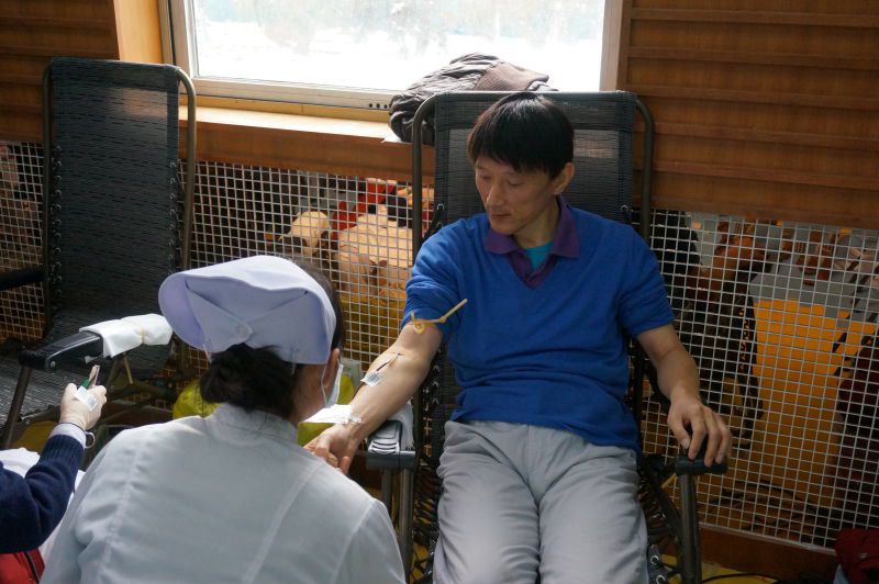 除了参与成分血的捐献,218名师生参加了全血的捐献。记者走到排队等待献血的同学中间,询问到他们为什么要来献血时,同学们普遍认为献血是对自己和对社会都有意义的事情。