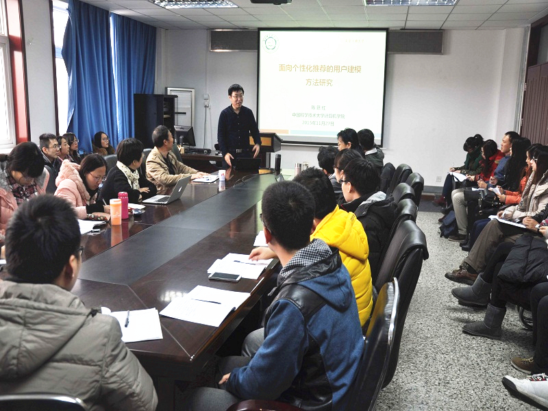 11月27日,国家杰出青年基金获得者、中国科学技术大学计算机学院副院长陈恩红教授应邀作了题为“面向个性化推荐的用户建模方法”的学术报告。报告会由研究生院主办,计信学院党委书记陈谊教授主持。学院院长蔡强、教务处副处长李海生、学院副院长刘新亮及学院教师和研究生参加了报告会。