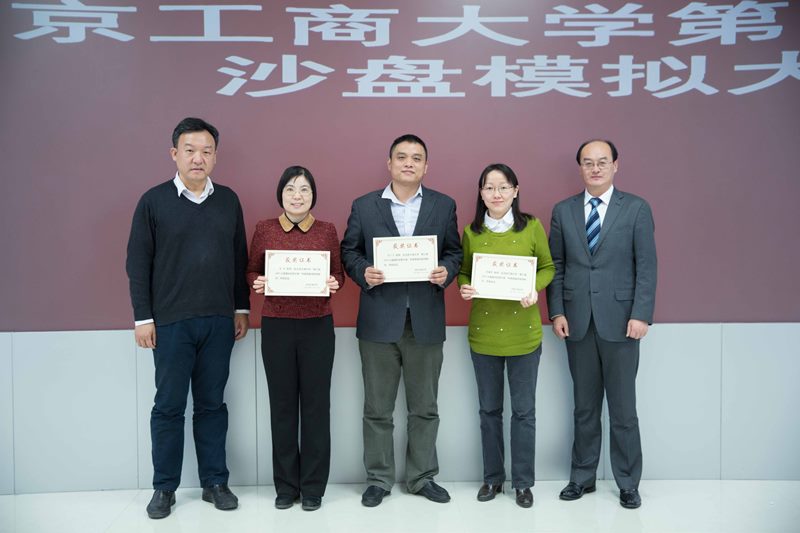 颁奖大会还特别设计了感谢环节,郭馨梅分别向集训了5个月代表学校参加第十一届“新道杯”沙盘大赛全国总决赛的团队以及组织本次校园赛的沙盘爱好者协会表示了衷心的感谢。颁奖嘉宾分别为最佳财务奖、一、二、三等奖获得者以及优秀指导老师颁发了证书。