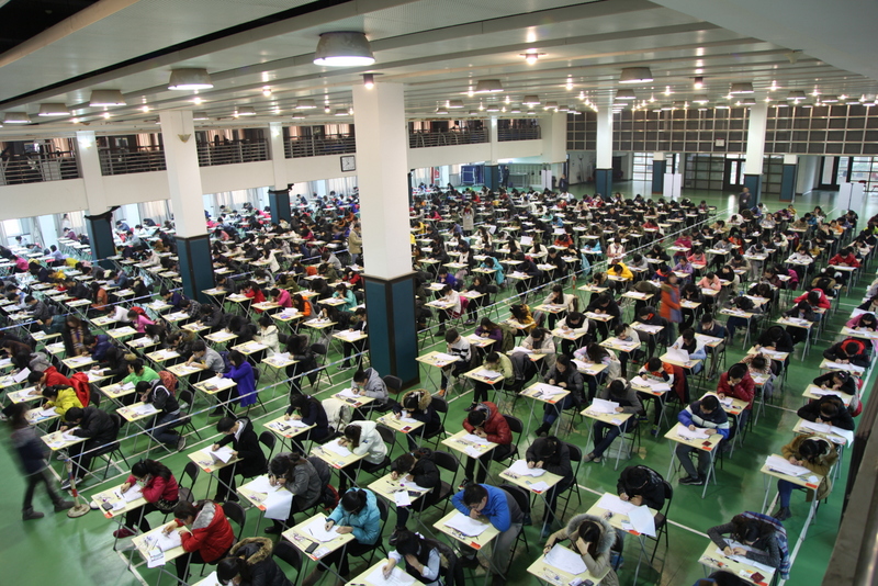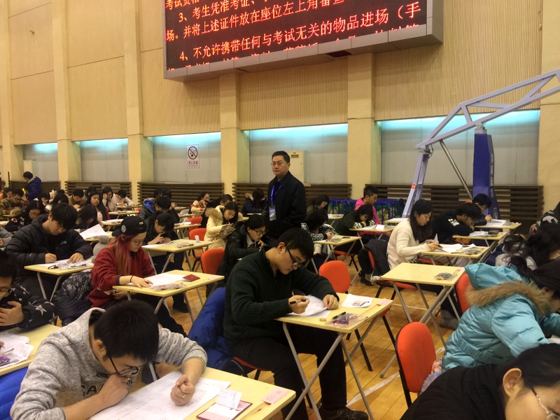 每场开考前,考务工作人员对考生信息认真核查,考生携带准考证和学生一卡通才可进入考场。在工作人员的指引下,学生可以根据细致的考区分布图顺利找到座位,考场内秩序井然。期末考试期间,良乡校区文体馆考区举行了34场考试,阜成路校区教职工活动中心举行了33场考试,考试科目为校定必修课和专业基础课。高等数学、大学英语、大学物理、微积分、线性代数管理学、宏观经济学、会计学等科目采取不同专业、不同科目同场考试和同科考试设置多份试卷的方案,保证了考试的公平性和公正性。