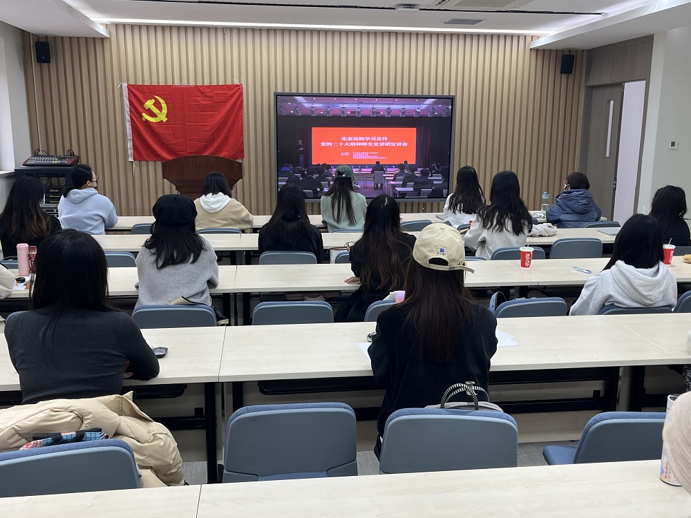 为深入学习宣传贯彻党的二十大精神,坚持不懈以中国化时代化的马克思主义武装学生头脑。按照市委教育工委有关部署,在学生处统一安排下,各学院组织近千名师生线上参加“北京高校学习宣传党的二十大精神师生宣讲团”首场宣讲会。