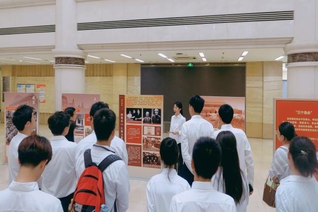入团仪式后,全体师生前往图书馆参观“‘京’彩文化 青春绽放”行动计划红色行专题,“永葆青春活力——香山时期中国共产党自我革命实践”党纪学习教育专题展览。校团委“青春宣讲团”成员董奕悦、韦懿珈、许睿宁、杨灿、杜佳依为现场师生进行了详细讲解。