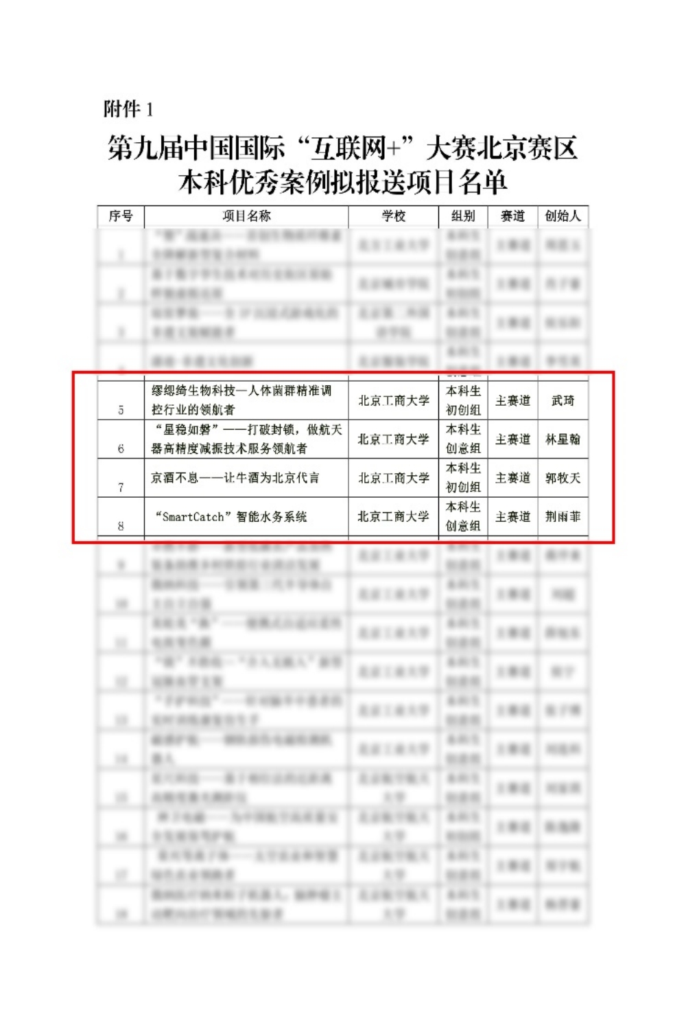 武琦等15位同学的项目《缪缌绮生物科技——人体菌群精准调控行业的领航者》(指导教师:徐春明、左敏、马慧鋆、吴玥、陈海涛等)、林星翰等7位同学的项目《“星稳如磐”——打破封锁,做航天器高精度减振技术服务领航者》(指导教师:黄志刚、郭克友、李刚、曹菲)、郭牧天等14位同学的项目《京酒不息——让牛酒为北京代言》(指导教师:吴玥、马慧鋆、黄明泉等)、荆雨菲等8位同学的项目《“SmartCatch”智能水务系统》(指导教师:吴玥、马慧鋆、王楠、莫立坡、曹显兵等)均荣获第九届“互联网+”大赛北京赛区高教主赛道一等奖,并成功入选北京赛区优秀本科案例。