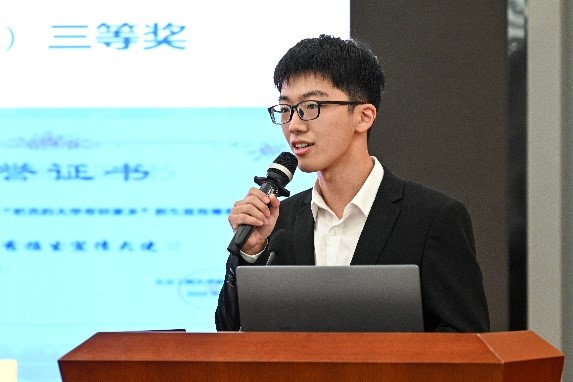 在评审环节,来自9个学院推荐的25名国家奖学金候选人,按照抽签顺序依次登台,通过200秒PPT文稿来展示自身在学术竞赛、科技创新、社会实践、学生工作以及志愿服务等方面取得的成绩。候选同学们台风稳健,自信满满,思路清晰,一字一句无不洋溢着对理想的追求、对知识的渴望和对母校的感恩,一件件事迹都彰显着他们勇担时代重任、锐意进取逐梦的勇气与决心。25名候选人展示完毕后,在场的专家评委、教师评委、学生评委进行线上打分,最终推荐成绩排名前19名的候选人上报北京市。