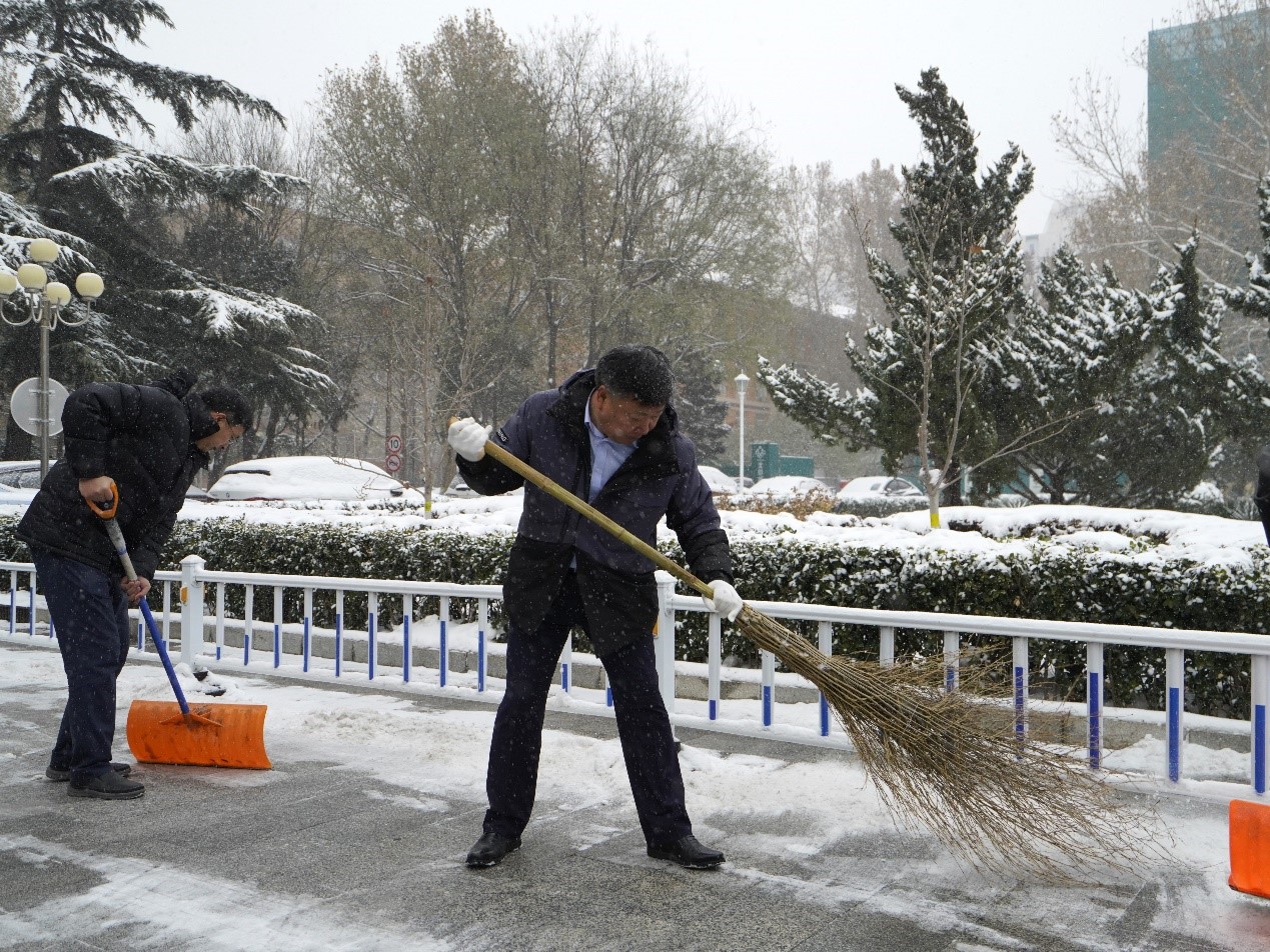 连日来,全市迎来强降雪和寒潮天气。为最大限度减少冰雪天气对师生出行和教学秩序带来的不利影响,学校提前研判、迅速部署,于12月14日上午组织阜成路校区在岗机关干部投入清理冰雪一线。