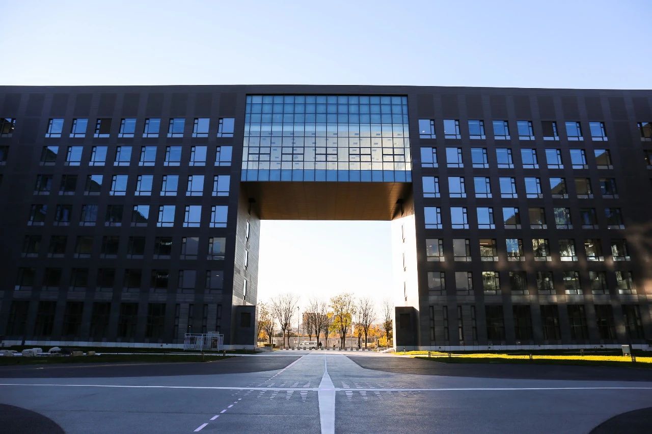 大楼的设计理念是方圆相济、和谐共生。方,是一种做人的原则;圆,是一种处世的智慧。利用理念及传统造园哲学相结合,创造亲切而富有美感的观赏和体验空间。既是对传统景观的当代解读,整体为外方内圆的形式设计,又通过围合空间的建立和运用小中见大的景观手法以及填挖方的工程技术将整体和谐统一。