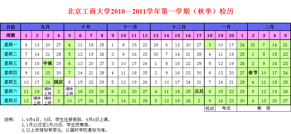 作者:obao欧宝娱乐 2010-2011学年第一学期(秋季)校历