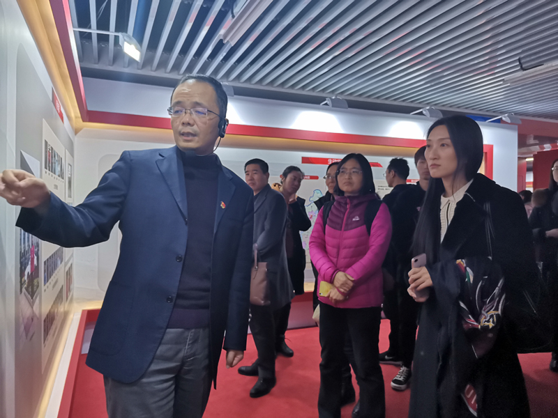 在北京联合大学党委宣传部、教师工作部常务副部长孔军的陪同下,全体党员教师首先参观了“以习近平新时代中国特色社会主义思想为指导落实立德树人根本任务”课程建设展,展览内容丰富多样,一共划分为“真学、真懂、真信、真用”,“铸魂育人、担当使命”,“党支部推动、先行先试”,“持续推动、久久为功”和“家国情怀、人类关怀”五个模块,呈现了北京联合大学党委围绕立德树人根本任务,深入探索将“课程思政”浸润到教书育人生动实践的特色做法,以生动典型展现榜样力量。学院教师认真听取讲解,仔细观看版画、照片、实物,与北京联合大学领导和教师深入交流,对北京联合大学“课程思政”建设有了全面的了解和认识。