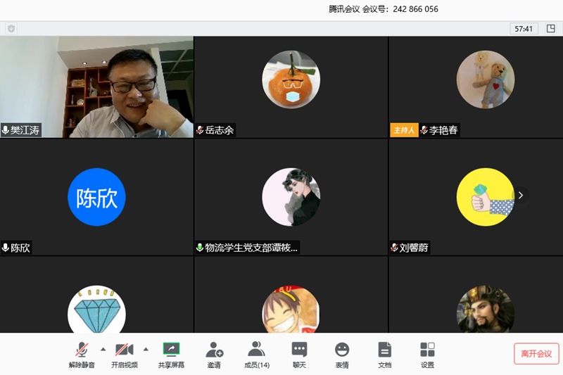 樊江涛在两次视频会上结合疫情阻击战做了党课教育,他用一个个事例数据对比了中外新冠肺炎疫情防控工作,引导大家深入理解党的十九届四中全会关于推进国家治理体系和治理能力现代化的精神,深入理解总体国家安全观、人类命运共同体等“中国理念”,深入理解中华优秀传统文化和党的教育方针对于国民教育的重要性,号召党支部团结带领党团员冲锋在前,再接再厉,用实际行动向打赢疫情阻击战交出满意的答卷,并结合专业就疫情对产业结构、消费习惯、文化生活方式带来的影响开展学术性研讨。他提醒大家要清醒地看到西方反华势力利用疫情对我国的丑化抹黑,在意识形态领域对崛起的中国极尽所能地围追堵截、打压渗透,引导大家认识意识形态斗争的长期性和艰巨性,牢固树立“四个意识”,坚定“四个自信”,坚决做到“两个维护”。