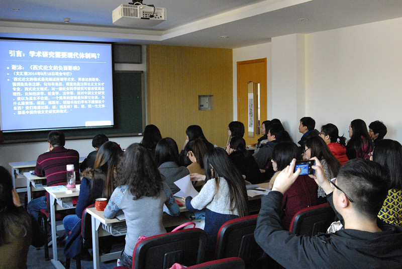 王一川教授题为《学术研究的四个台阶》的学术讲座,娓娓道出了学术研究之路:从读书、读书报告、研究论文到课题申报,并通过自己的研究、课题申报亲身经历,提示老师要勇于开拓个人的学术园地,坚持学术研究道路。王教授的讲座以独特的人格魅力、丰博的学识、直爽的人生态度,给艺传学院老师带来深刻启迪。讲座前,王一川教授在艺术与传媒学院党总支书记秦巍、副院长郑子云的陪同下,参观了学院的艺术展厅。