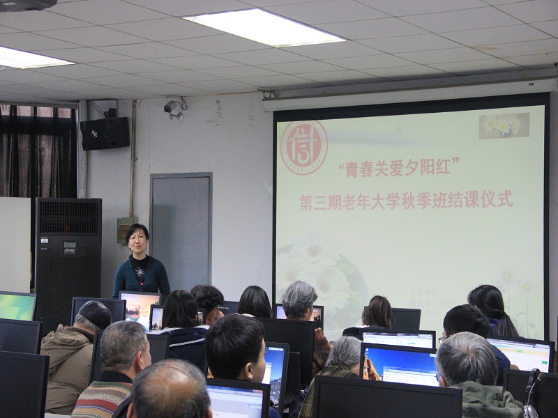 12月16日,学校“青春关爱夕阳红”离退休教职工计算机培训班(老年大学2015年秋季班)结课仪式在阜成路校区召开。离退休工作处副处长王红英、计信学院领导陈谊、蔡强、张凯伟、刘新亮及学校离退休教师、学生讲师和助教们参加了此次结课仪式。
