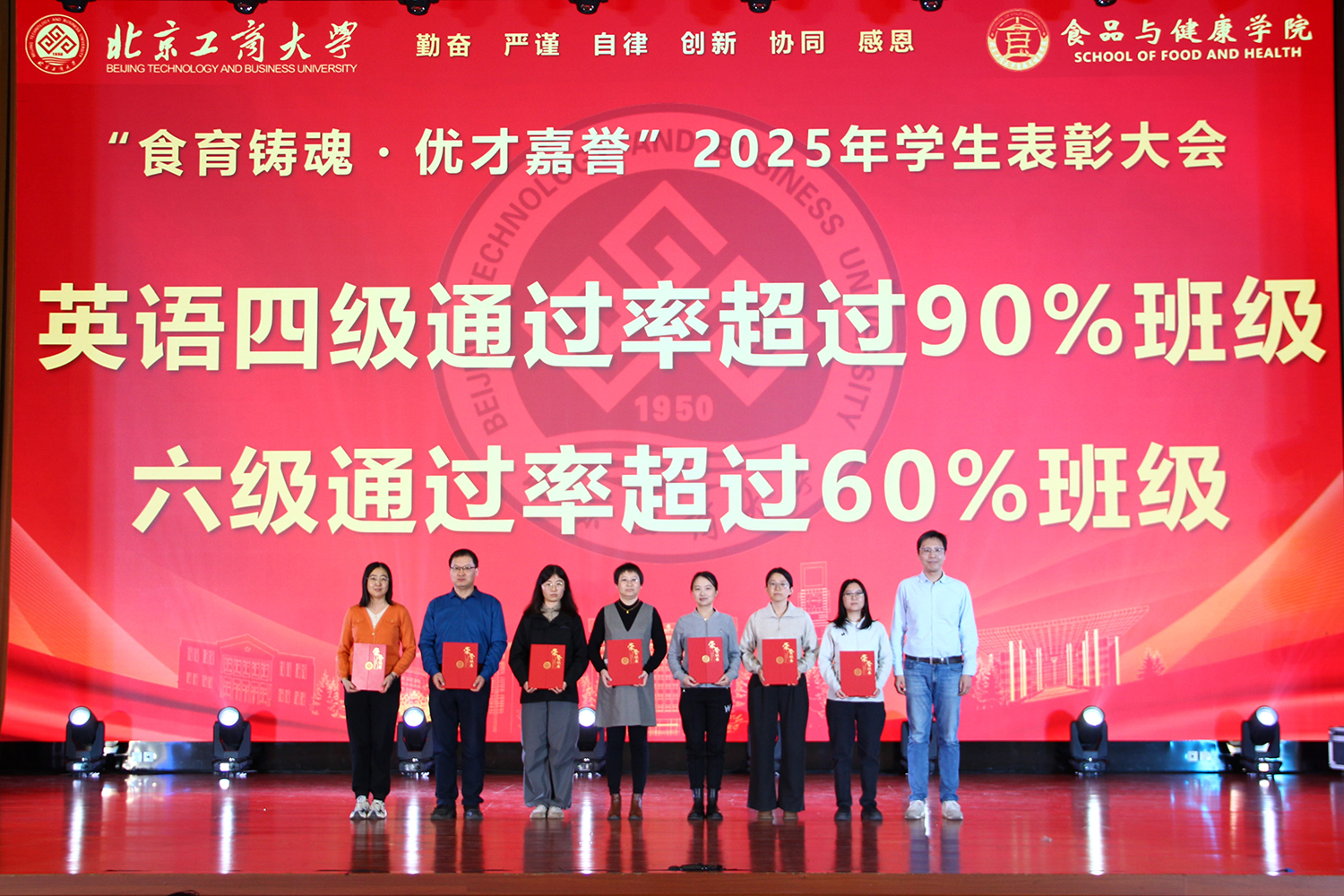 12月6日,食品与健康学院在良乡校区隆重举行“食耀青春 筑梦新程”2025年学生表彰大会暨首届美食科技文化节闭幕式。学校党委常委、副校长寇红江,学校团委书记单紫薇,学院特邀嘉宾味食源奖学金管理方代表、北京味食源食品科技有限公司董事长助理兼研发总监严江,钟香驹奖学基金管理人、钟香驹教授之女钟捷,中融百鸣投资管理集团有限公司董事长陶庆,北京康安利丰农业有限公司党支部书记、副总经理乔雪静,北京藻辰生物科技有限公司创始人杨阳,北京首朗生物科技有限公司常务副总经理李重阳,北京康比特体育科技股份有限公司产品开发中心总监王冬,食品与健康学院领导班子、各系主任以及教师代表、班主任代表、辅导员、学生代表齐聚一堂,共同见证学院人才培养成果,表彰先进典型。