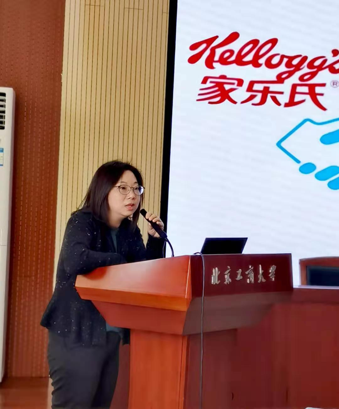 最后,学院党委书记胡燕霞在讲话中向益海嘉里集团各位嘉宾的到来表示欢迎,向集团多年来大力支持学校和学院教育事业发展、重视人才培养的善举表示感谢。她回顾了学院与益海嘉里集团的合作之路,期待校企双方在产学研合作的方向上进行深度交流、合作,实现双赢。希望同学们一要执着追求学术更高境界,推动食品安全社会共治,促进中国食品行业健康发展;二要将个人学术理想融入国家科技创新的伟大事业中,共谱民族复兴崭新篇章;三要着眼全球贡献中国智慧。