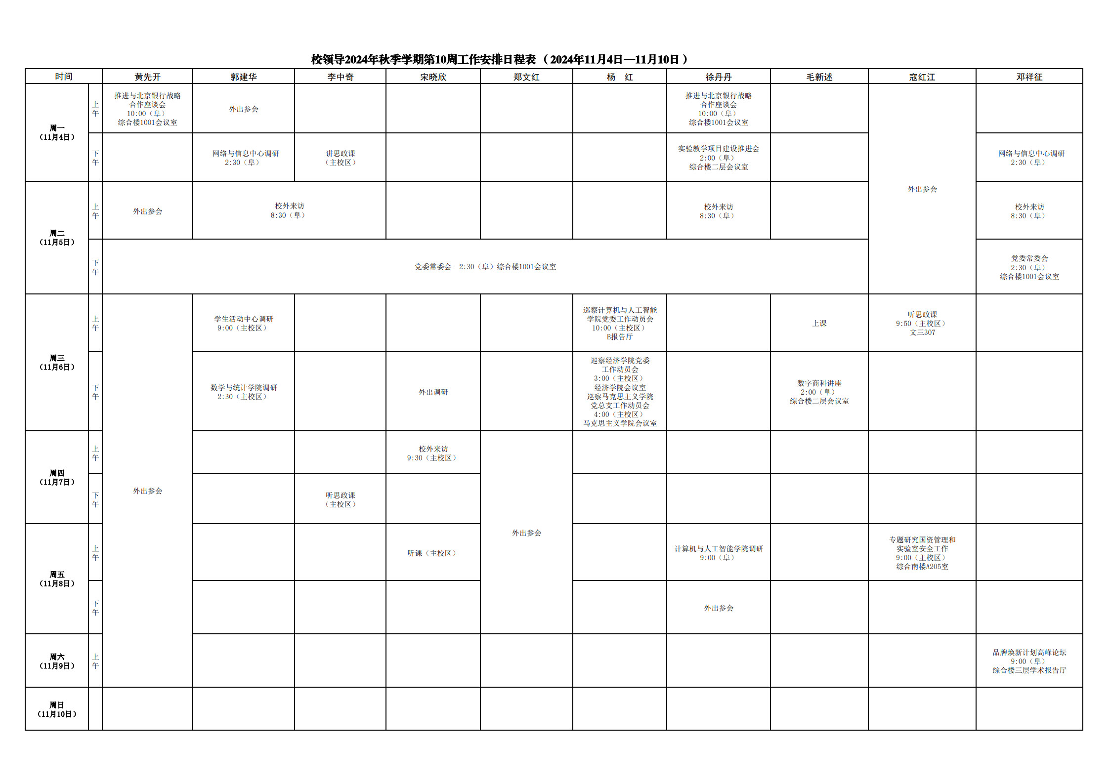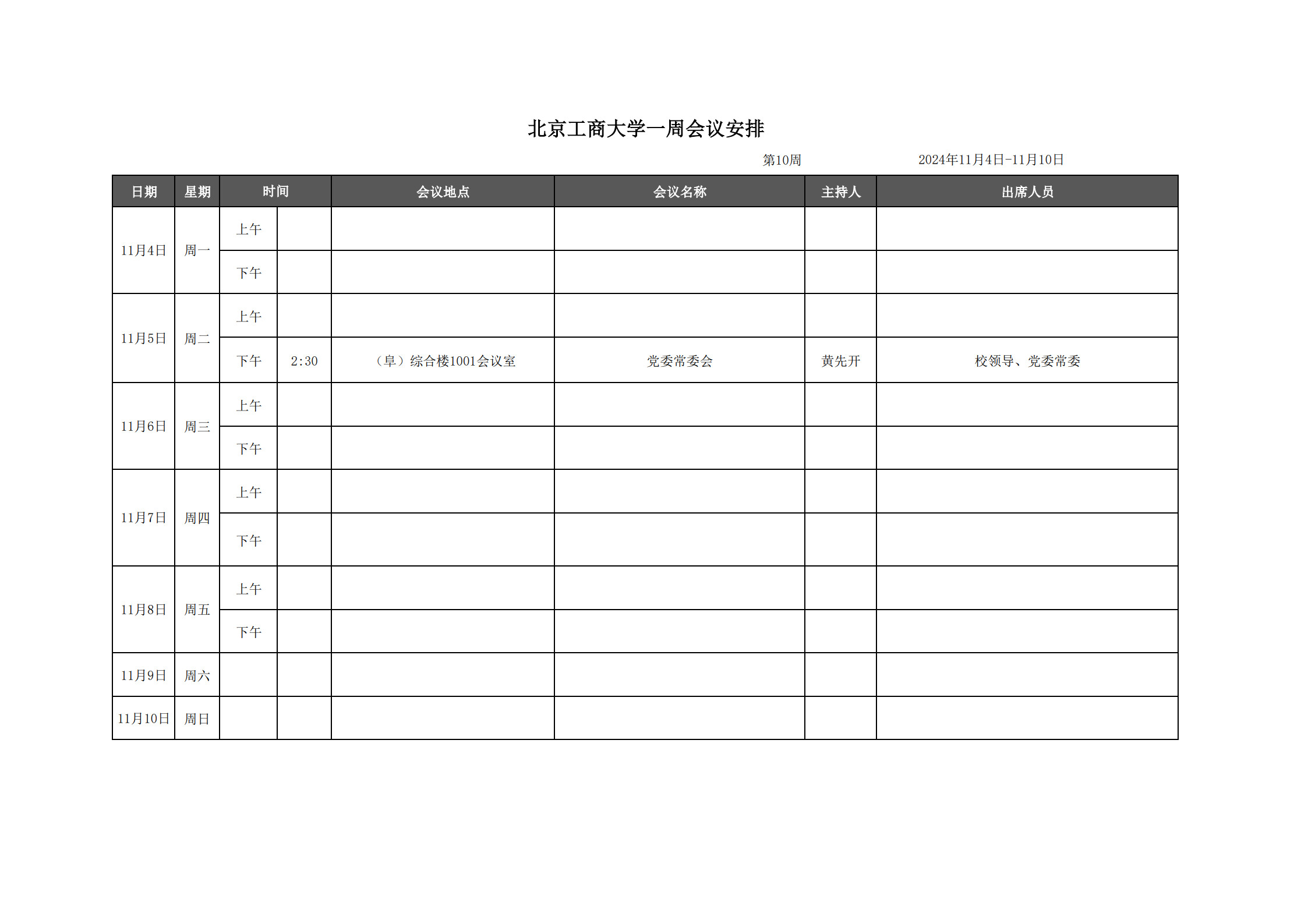第10周会议安排