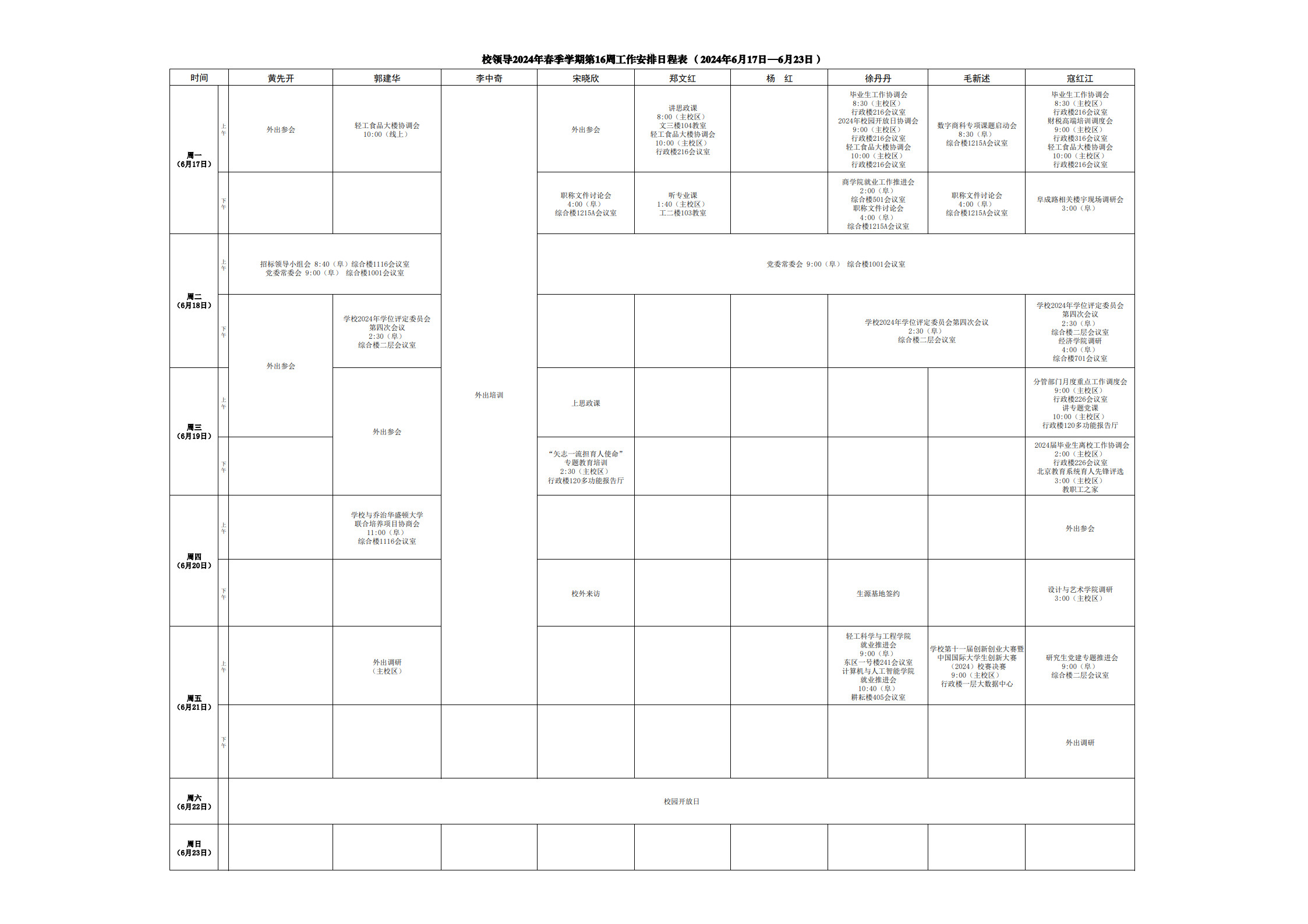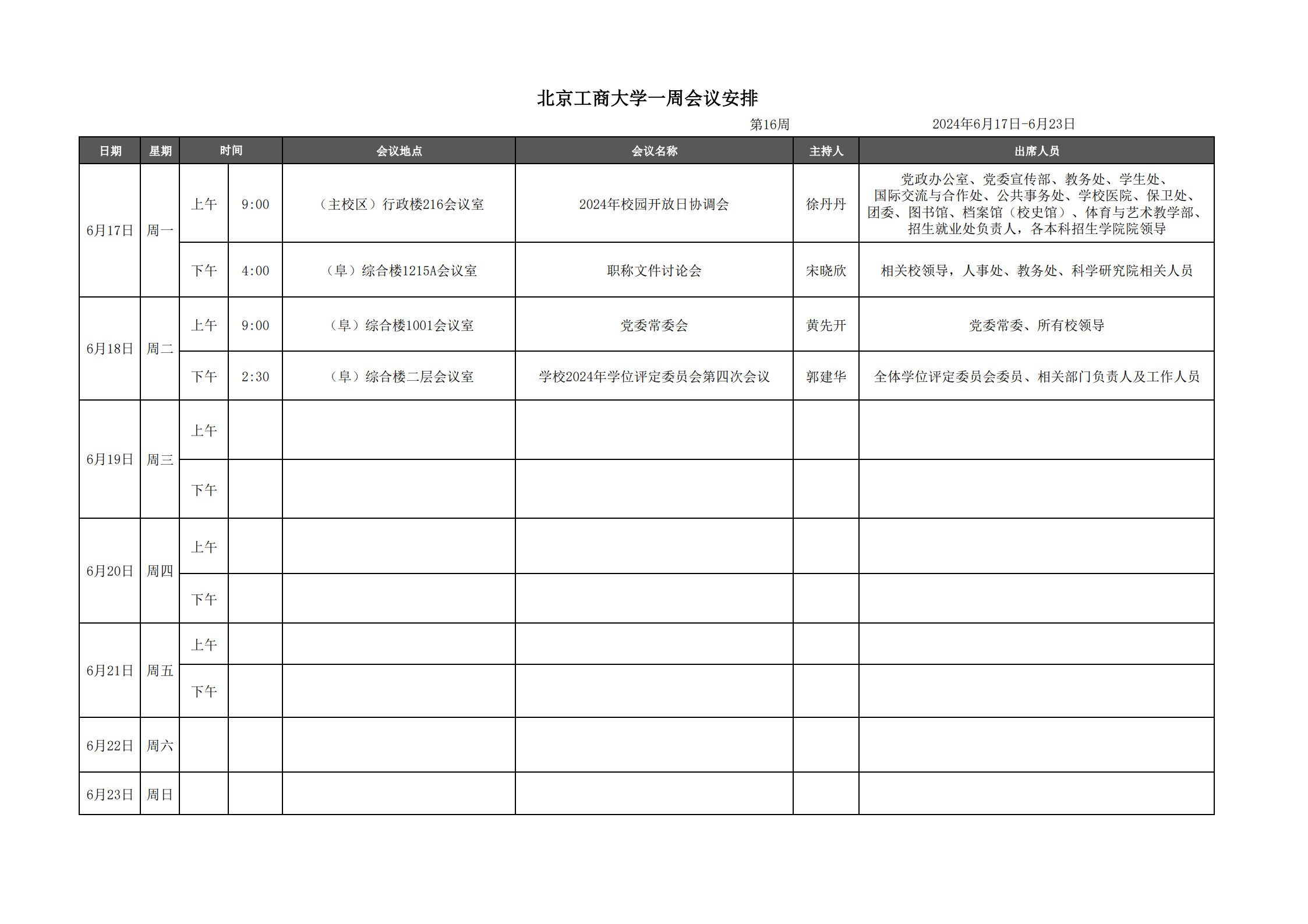第16周会议安排