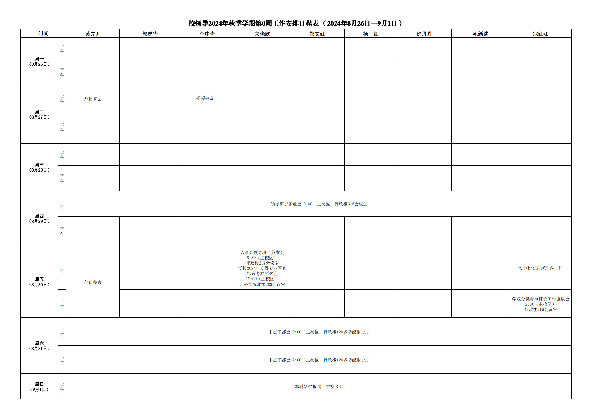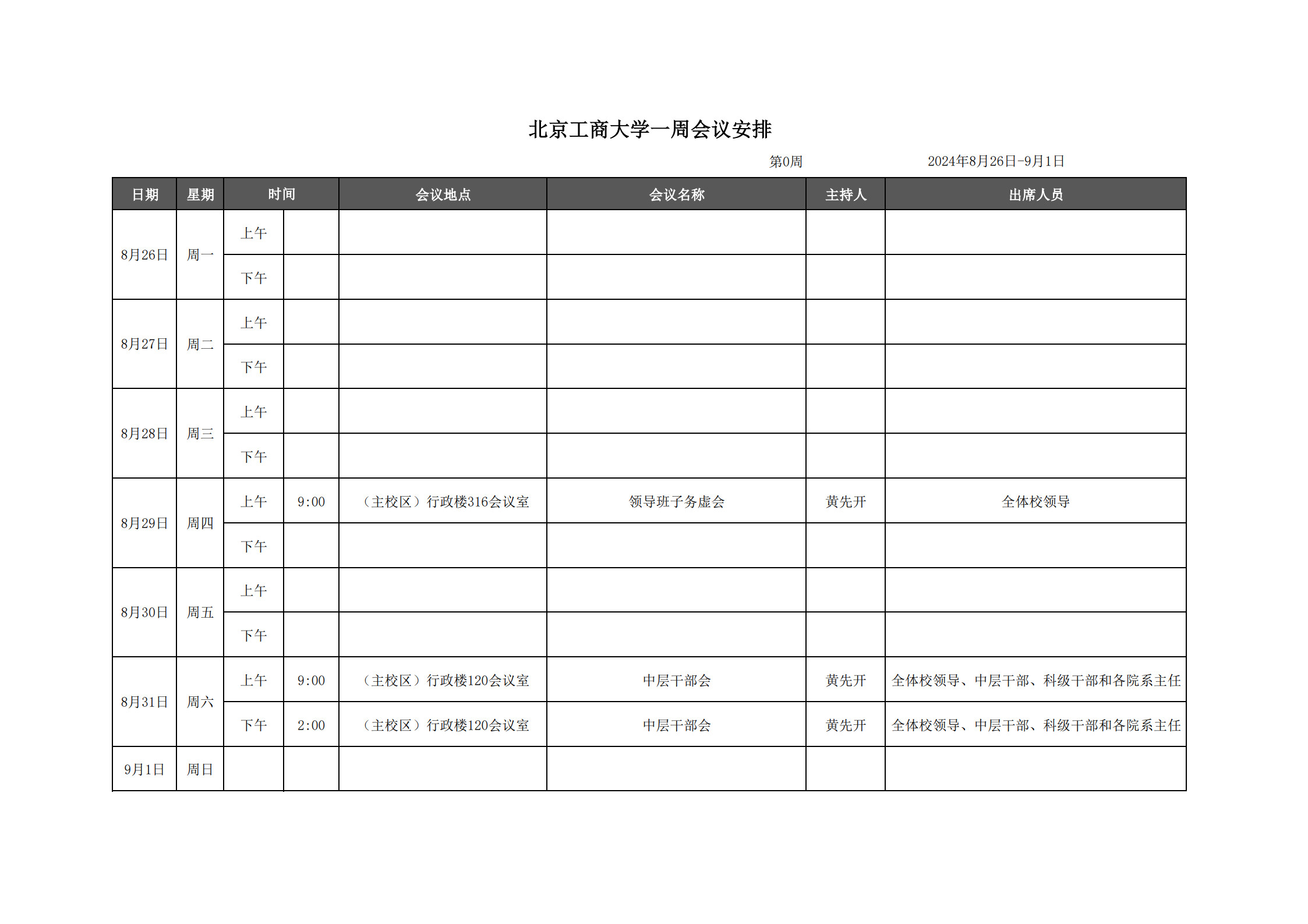 第0周会议安排