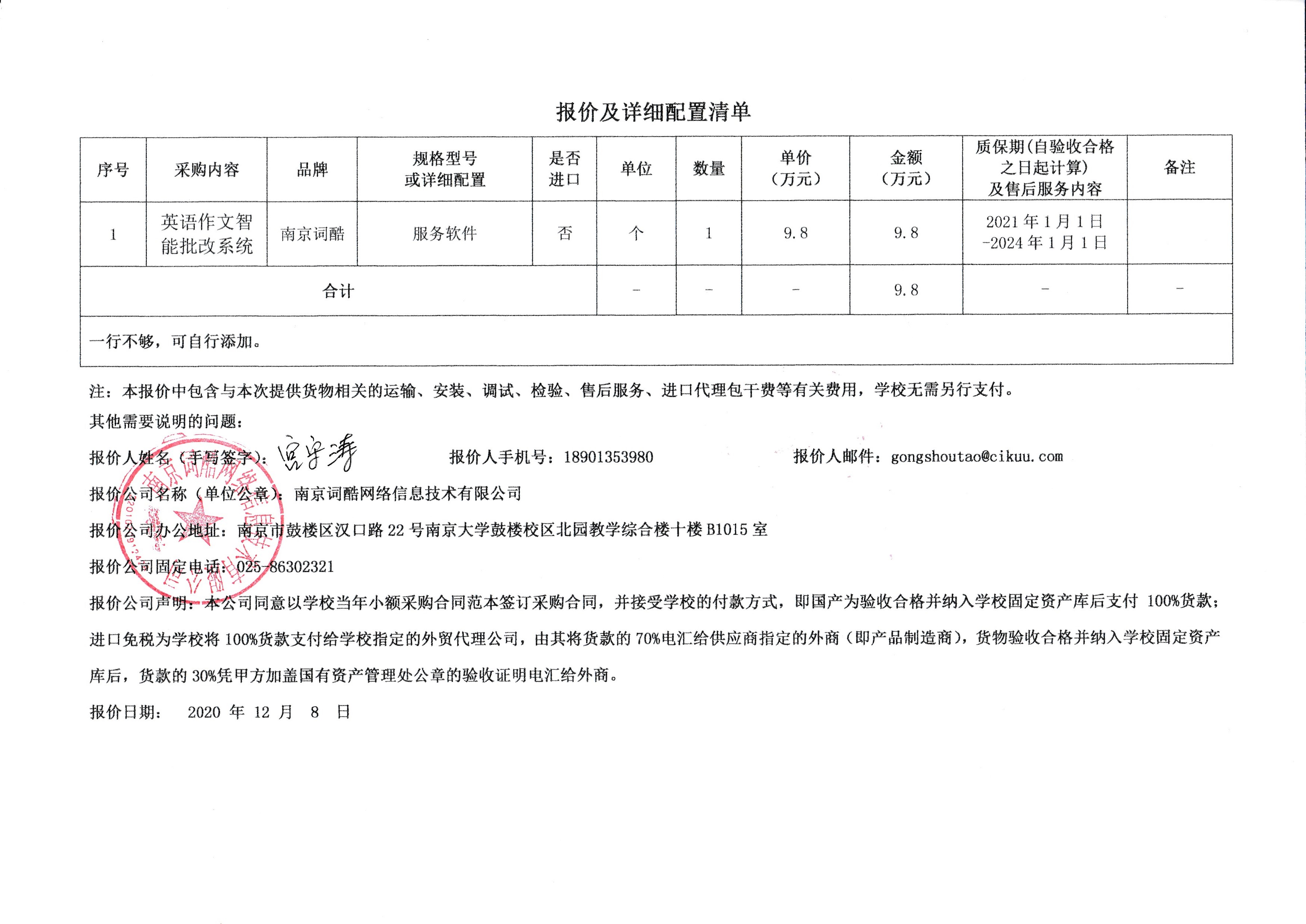三是南京词酷网络信息技术有限公司是该软件的研发单位,同时也是北京语言智能协同研究院唯一技术支持单位,承诺根据我们的实际需求安装和使用培训服务,并提供优质的售后服务。