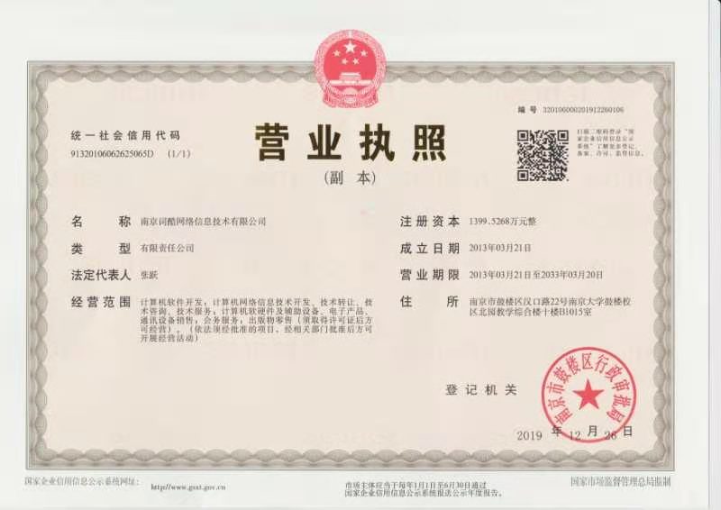 (一)南京词酷网络信息技术有限公司